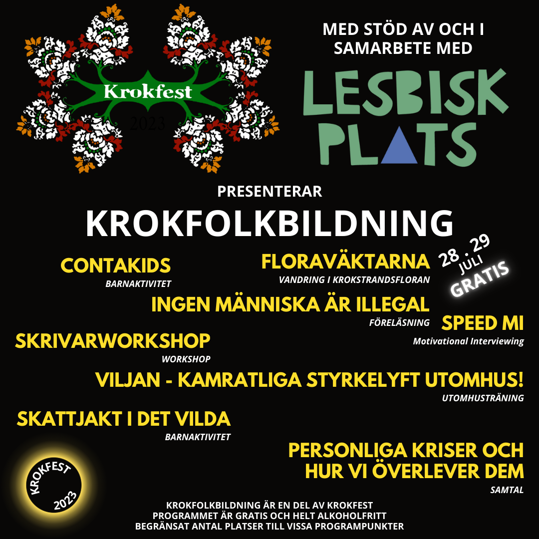 Krokfest-crew bidrar till starka lokalsamhällen, solidaritet, gemenskap och nytänkande. Folkets Hus används flitigt. Vi driver odlingsprojekt, friluftsaktiviteter och social organisering i Krokstrand.
